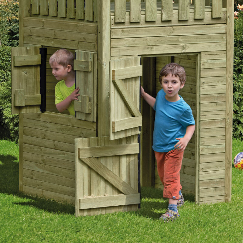 Wandelemente für Spieltürme Die Wandelemente für Spieltürme sind aus druckimprägniertem Kiefer- und Fichtenholz gefertigt. Das Set besteht aus insgesamt 4 Teilen, dazu gehören 2 geschlossene Elemente, 1 Fensterelement und 1 Türelement. Dieses Set bietet eine tolle Erweiterung für Ihre Spielanlage.