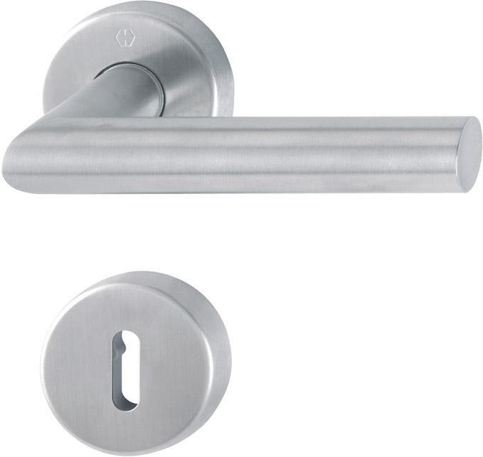 • Verdeckte, lockerungssichere Verschraubung mit durchgehenden Gewindeschrauben (Griffrosetten) und selbstschneidenden Gewindeschrauben (Schlüsselrosetten)