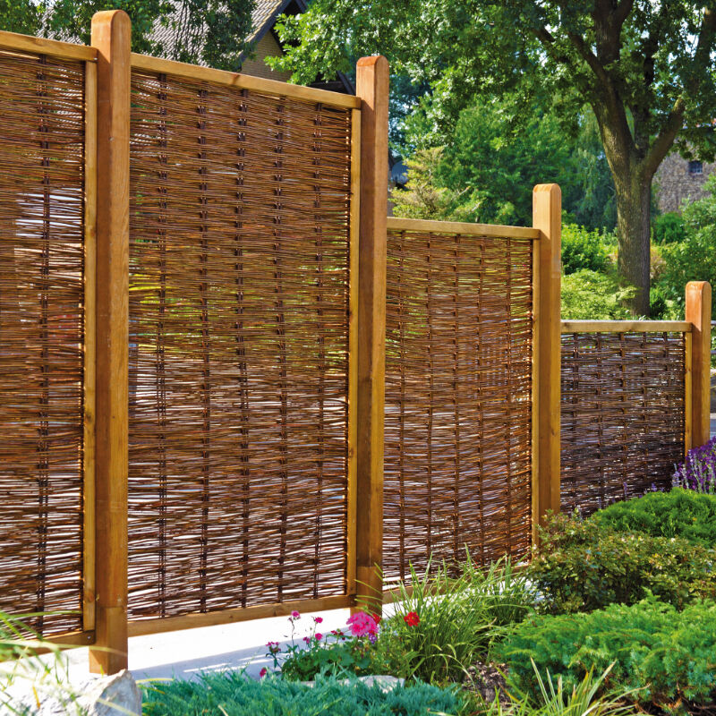 Der FAKO-Weidengeflechtzaun ist ideal, wenn du dir im Garten mehr Privatsphäre wünschst, aber trotzdem eine natürliche Optik behalten willst. Das fein verflochtene, ölbehandelte Weidengeflecht wirkt warm und lebendig und macht aus einer einfachen Abgrenzung schnell eine gemütliche Wohlfühlecke. Der umlaufende, braun gebeizte Kieferrahmen fasst das Geflecht sauber ein und sorgt für ein ordentliches Gesamtbild. Praktisch ist auch die Auswahl, du bekommst den FAKO in vier Größen, damit er zu deinem Projekt passt, egal ob Terrasse, Sitzecke oder Grundstücksgrenze. Technische Daten Material Weide, ölbehandelt Rahmen Umlaufender, braun gebeizter Kieferrahmen, ca. 35 x 45 mm Farbe Natur Zaunmaße B x H 120 x 100 cm, 120 x 120 cm, 120 x 140 cm, 120 x 180 cm Irrtümer oder Änderungen vorbehalten.