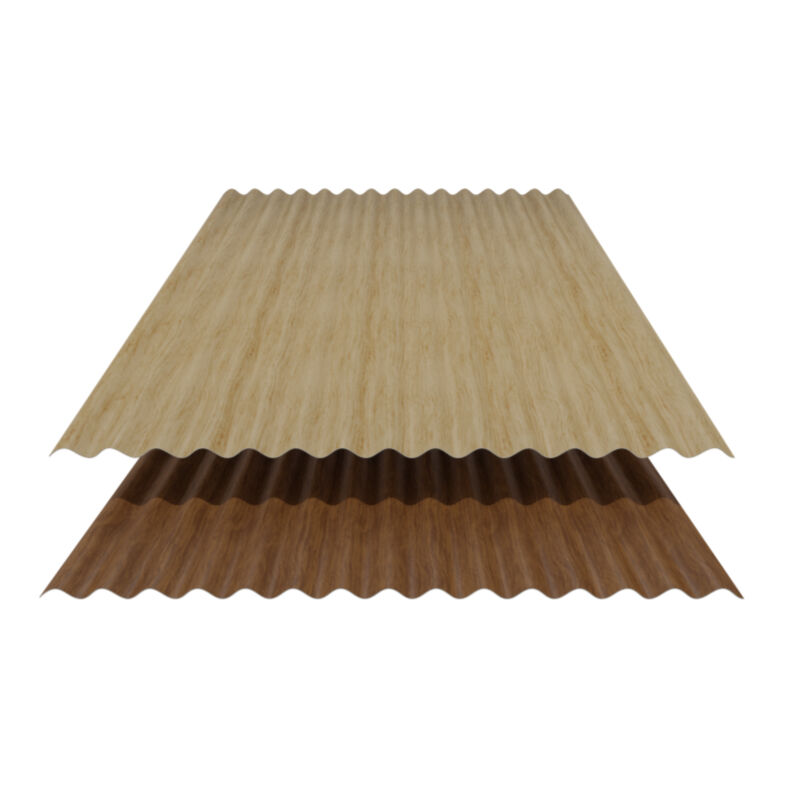 Profilblech matt Wellblech Wandblech 76/18 in Holzoptik Eiche/Ahorn Mattes Fassadenblech mit Holzoptik Struktur für die Verkleidung von Wänden im Innen und Außenbereich. Das verzinkte Wellblech eignet sich sehr gut für die Fassadensanierung bei Altbauten, aber auch für die Verkleidung neuer Gebäude. Je nach Geschmack lassen sich die Platten waagerecht oder senkrecht montieren was die zeitlose Optik sehr gut unterstützt. Das Blech bekommen Sie mit einer Stärke von 0,50mm, dessen Oberfläche ist mit einem matten, 35my starken Schutzlack versehen ist, auf den der Hersteller 15 Jahre Garantie auf Durchrostung und Beschichtung gewährt. Weitere Informationen dazu finden Sie in den Garantiebestimmungen. * Güteüberwachte Produktion mit CE-Zertifikat Jeder Auslieferung liegt ein Palettenbegleitschein bei, dem Sie die wichtigsten Produktdaten entnehmen können. Hier finden Sie Angaben über die verwendeten Stahlgüten, Materialstärken, Zinkauflagestärken und Beschichtungsart. Diese Angaben werden bei der Fertigung durch Fremdüberwachung sichergestellt und mit dem Ü-Zeichen bestätigt. Einsatzbereich Wandblech: Wandverkleidung, Carport, Garage, Hallenwandverkleidung, Schuppen, Viehstallungen, Terassenüberdachung, Holzunterstand, Landwirtschaft, Dachunterschläge, Maschinenhalle, Baustellenzaun NICHT FÜR DIE VERWENDUNG AUF DEM DACH GEEIGNET. Hinweis zur Berechnungsgrundlage der Plattenpreise: Plattenbreite x Plattenlänge x m² Preis Weiteres Zubehör: Für den perfekten Abschluss aller Seiten, wie Pult, Traufe oder Ortgang empfehlen wir Ihnen die passenden Winkelbleche. Die Kantteile können in der gleichen Farbe wie die Bleche produziert werden aber auch farbige Akzente sind mit Farbkombinationen möglich. Ihrer individuellen Note sind kaum Grenzen gesetzt. Alle Kantteile werden individuell für Sie auf Maß gefertigt!