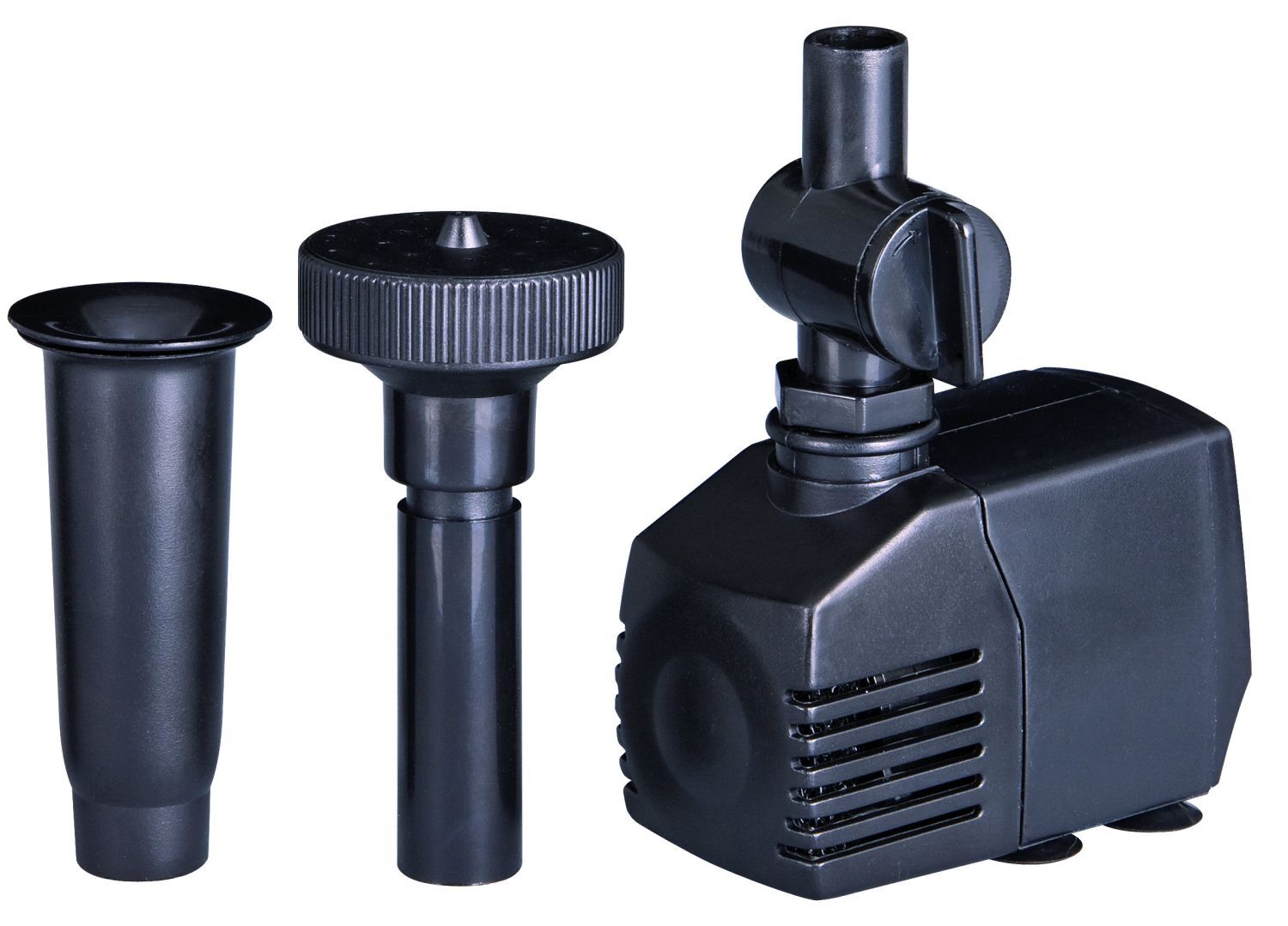 Teichpumpen für Wasserspiele und Fontänen. Erhältlich in verschiedenen Leistungsstufen, je nach Typ mit einem oder zwei Düsenaufsätzen, Teichpumpe für kleine Teiche bis zu 1000 l