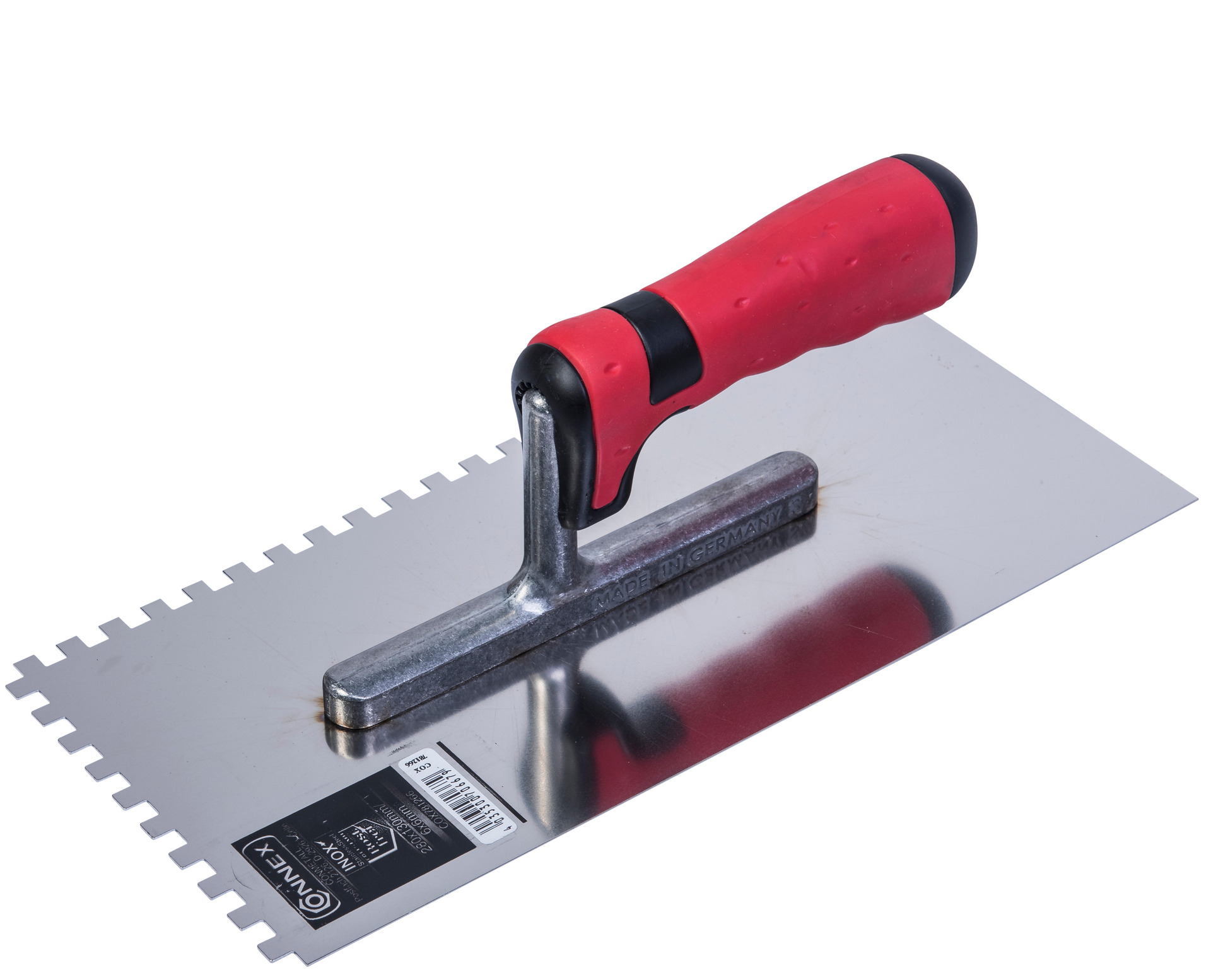 Rostfrei, Zahnung vorn und rechts, mit Zwei-Komponentengriff, 130 x 280 mm