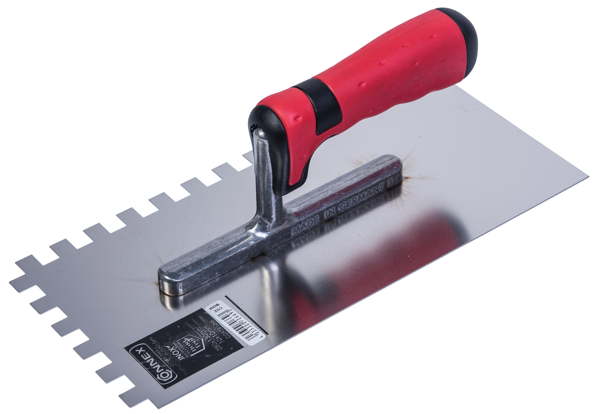 Rostfrei, Zahnung vorn und rechts, mit Zwei-Komponentengriff, 130 x 280 mm
