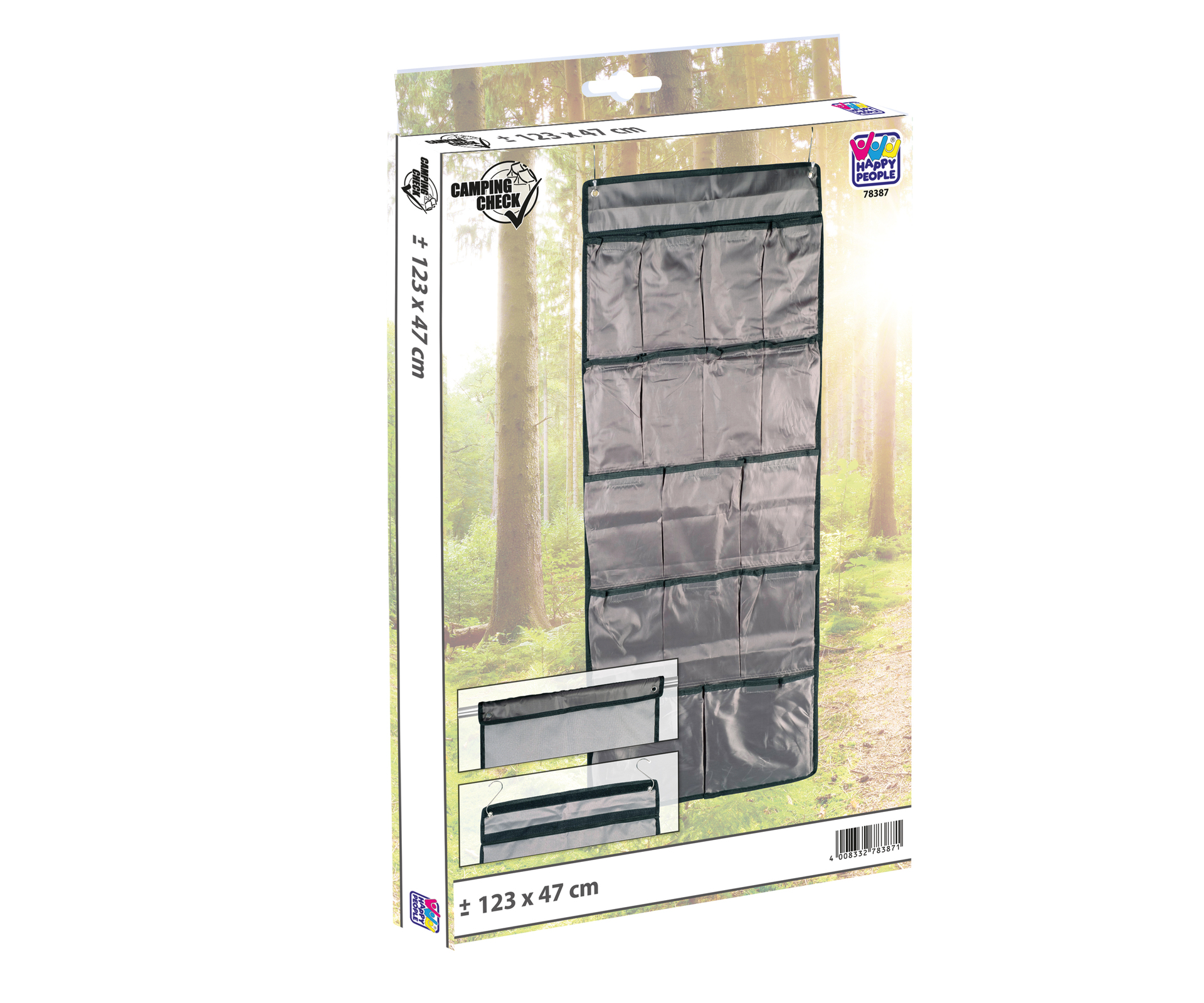 Zelt-Organizer, Maße: ca. 123 x 47cm, 16 Fächer, inkl. 2x “S”-Haken zur Befestigung, Material: Polyester
