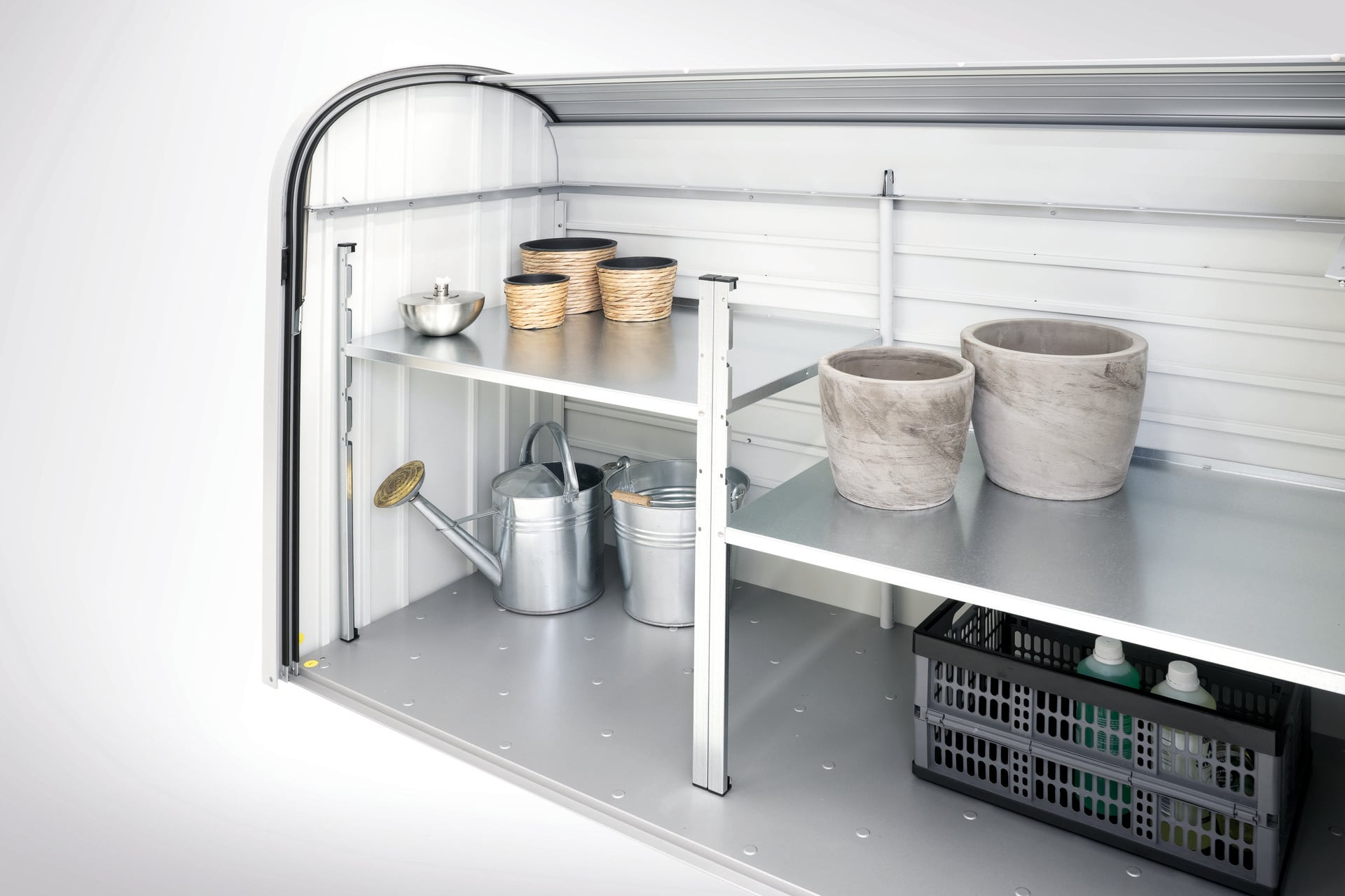2-teiliger, feuerverzinkter Stahlboden mit Regalstützen, Traglast max. 100kg, auch als 2-teiliges Regal verwendbar, 5-fach höhenverstellbar, nachträglich einfach einzubauen